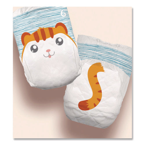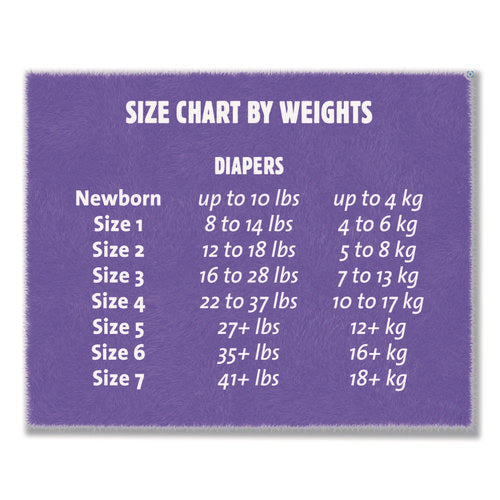 Keep moisture away from babies' skin with these premium absorbency baby diapers. The hypoallergenic construction is ideal for infants with sensitive skin. The cloth-like outer layer adds a soft finish to each diaper. Easy-lock fastener tabs provide an adjustable fit, while leg cuffs and an elastic waistband deliver added comfort. Feature a unisex design and ultra-absorbent core, providing reliable protection against leaks for girls and boys.