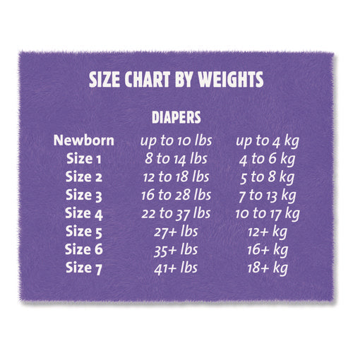 Keep moisture away from babies' skin with these premium absorbency baby diapers. The hypoallergenic construction is ideal for infants with sensitive skin. The cloth-like outer layer adds a soft finish to each diaper. Easy-lock fastener tabs provide an adjustable fit, while leg cuffs and an elastic waistband deliver added comfort. Feature a unisex design and ultra-absorbent core, providing reliable protection against leaks for girls and boys.