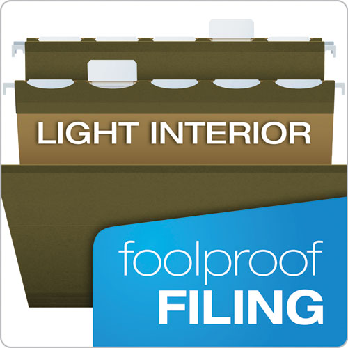 Ready-tab Extra Capacity Reinforced Colored Hanging Folders, Letter Size, 1/5-cut Tabs, Standard Green, 20/box