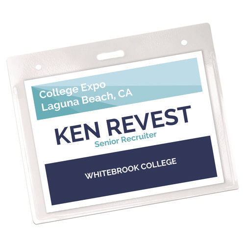Secure design keeps badges from falling out. Heavyweight flexible plastic is ideal for permanent or temporary identification. Protect security access control cards or create name badges. Multi-use styles are pre-punched to accommodate lanyards and reel clips. Use with Avery® Name Badge Inserts (5390 and 5392). Easy to Customize with free templates and designs using Avery Design & Print online.