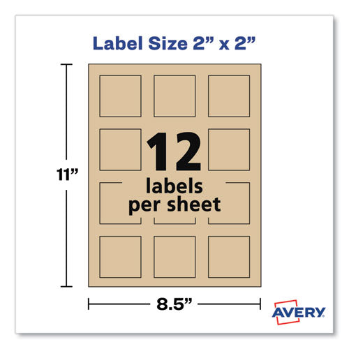 Square Print-to-the-edge Labels, Inkjet/laser Printers, 2 X 2, Kraft Brown, 12/sheet, 25 Sheets/pack