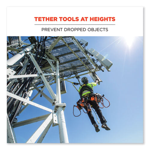 The Squids 3105 Tool Lanyard with Aluminum Carabiner + Cinch-Loop features both an aluminum carabiner, with locking screw-gate, on one end, and a low-profile cinch-loop on the other end, to enable easy tethering to a wide variety of tools and anchors. A flexible elastic-webbing design helps reduce snag hazards and tangles when working at heights, while a captive-eye, carabiner-end design helps the user better predict the direction of the load to prevent the lanyard from sliding into the carabiner's gate. Third-party certified to a maximum safe-working capacity of 15 lb with a 2:1 safety factor, these lanyards are ideal for a wide range of industry applications including construction, telecommunications, petro-chemical operations, utility-line maintenance and a variety of other areas where working at heights is the norm.