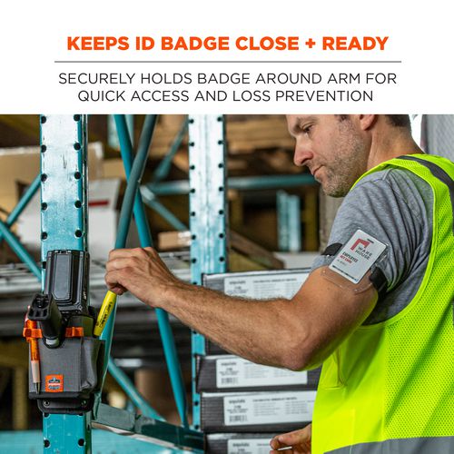 The Squids 3386 Vinyl Arm Band ID/Badge Holder is designed for easy access and prevention of lost IDs and badges. An elastic band with hook and loop closure adjusts to fit a range of arm sizes. Made with a durable vinyl for protection and long-lasting use.