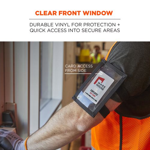 Squids 3387 Dual Band Arm ID/Badge Holder with zipper closure is designed for easy access and prevention of lost IDs and badges. A dual elastic band with hook and loop closures adjusts to fit a range of arm sizes or over bulky outwear, while a large interior pocket keeps both IDs/badges and small items secure, such as keys, EZ passes and money. The large clear window is made with durable vinyl for protection and long-lasting use. This arm band holder fits most ID badges or access cards measuring 4.75" x 2.75".