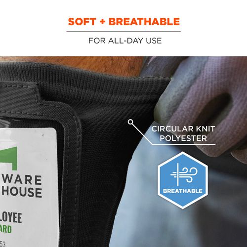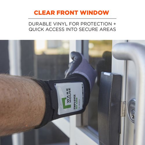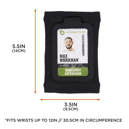 Squids 3388 Wrist ID/Badge Holder is designed for easy access and prevention of lost IDs and badges. A soft and breathable circular knit polyester material stretches to fit a range of wrist sizes, while a small pocket with zipper closure keeps small items secure. The clear window is made with durable vinyl for protection and long-lasting use. This arm band holder fits most ID badges or access cards measuring 3.75" x 2.75".
