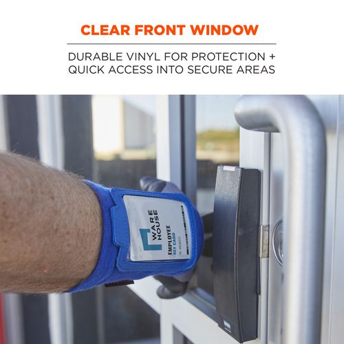 Squids 3388 Wrist ID/Badge Holder is designed for easy access and prevention of lost IDs and badges. A soft and breathable circular knit polyester material stretches to fit a range of wrist sizes, while a small pocket with zipper closure keeps small items secure. The clear window is made with durable vinyl for protection and long-lasting use. This arm band holder fits most ID badges or access cards measuring 3.75" x 2.75".