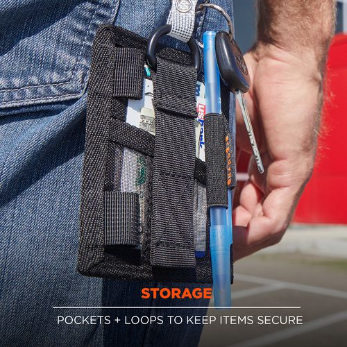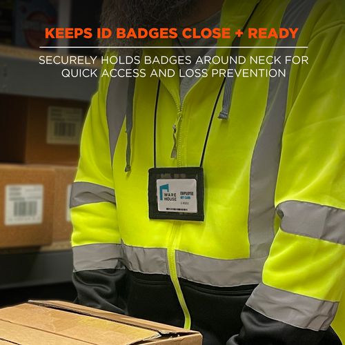 Squids 3389 Wallet ID/Badge Holder is designed for easy access and prevention of lost IDs and badges. Built for versatile use, this mini wallet can be worn as a neck lanyard (in a horizontal or vertical orientation) or can be attached to belt loops or mic tabs with its hook and loop closure. The clear window is made with durable vinyl for protection and long-lasting use. This mini wallet fits most ID badges or access cards measuring 3.5" x 2.75". A secure double-slotted pocket on the backside fits more than 20 cards and has a hook and loop closure to keep them safe. The neck cord features a breakaway closure to breakaway if snagged or caught in machinery. There is one longer elastic loop on the back for pens and pencils and two shorter web loops to run the neck lanyard through to wear the ID holder in a horizontal position.