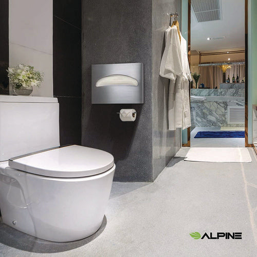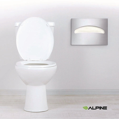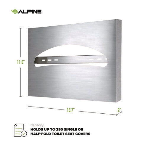 An easy, economical solution to a common problem, the Alpine Industries Toilet Seat Cover Dispenser distributes clean, sanitary seat covers in high-traffic restrooms. Allow your patrons, employees and visitors to have peace of mind when using the restroom by providing them with seat covers that will reduce the spread of germs. Made using 304 stainless steel construction, this dispenser will provide long-lasting strength and use for years to come. It features a rectangular shape with an arch-shaped dispensing area and has with a brushed finish that will fit into and enhance any existing decor. The dispenser comes with included hardware so you can easily mount onto any wall or stall area. It will make a great addition to any frequented restroom, including offices, restaurants, breakrooms, hospitals, healthcare facilities, schools, rest areas and much more. When the need arises, it can be easily filled up again from the bottom of unit.