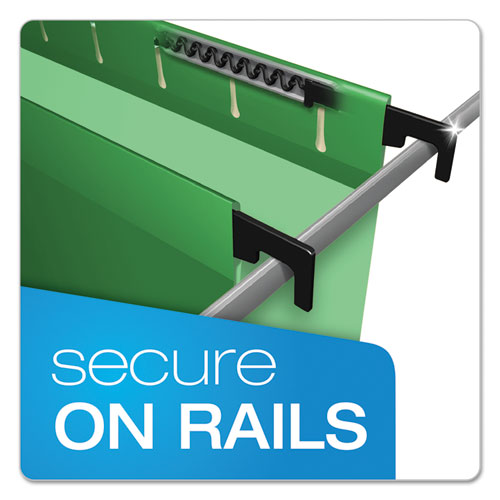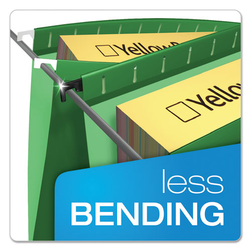 Look no further for one of the smartest, most innovative hanging folders around. Features SureHook™ technology with revolutionary built-in tension springs. Rods bend less while folders stay on rails and slide with ease. Rods and hooks are stronger and sturdier. Folders work with existing systems. Patented polylaminate reinforced tops and bottoms provide strength. Lighter interior colors help prevent misfiles. Includes tabs and inserts.