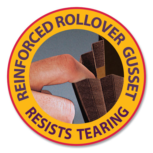 Extra-wide design allows top tab folders to fit neatly inside without bulging out the sides. The gusset is fully lined with tear-resistant material and features special rollover reinforcement at the top. The gusset extends into front and back panels twice as far as standard expanding wallets for super strong bonding strength. Tear resistant reinforced protective flap with elastic cord closure.