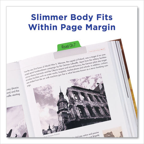 Sturdy, self-adhesive repositionable tabs that make indexing, marking, referencing and separating documents quick and easy. Writable on both sides of the tab, and the adhesive body is clear so you can see text underneath. Durable enough to turn pages like a divider, and they stick securely but remove cleanly with no residue. Ideal to use for organizing and marking key information in notebooks, files, books, planners and more. Perfect for home, office and school.