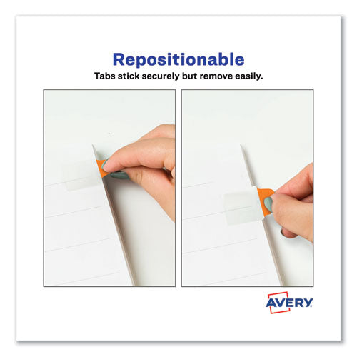 Sturdy, self-adhesive repositionable tabs that make indexing, marking, referencing and separating documents quick and easy. Writable on both sides of the tab, and the adhesive body is clear so you can see text underneath. Durable enough to turn pages like a divider, and they stick securely but remove cleanly with no residue. Ideal to use for organizing and marking key information in notebooks, files, books, planners and more. Perfect for home, office and school.