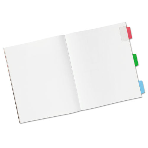 Sturdy, self-adhesive repositionable tabs that make indexing, marking, referencing and separating documents quick and easy. Writable on both sides of the tab, and the adhesive body is clear so you can see text underneath. Durable enough to turn pages like a divider, and they stick securely but remove cleanly with no residue. Ideal to use for organizing and marking key information in notebooks, files, books, planners and more. Perfect for home, office and school.