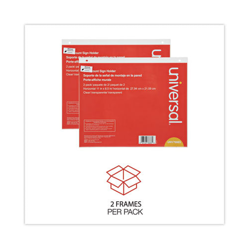 Wall Mount Sign Holder, 11 X 8.5, Horizontal, Clear, 2/pack
