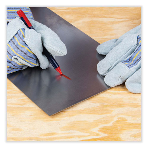 Versatile wax-based marking pencil for smooth, legible writing on a variety of surfaces. Use on both porous and nonporous surfaces, such as ceramics, stone, wood, glass, rubber, plastic, textiles, metal, coated paper, cardboard and more. Water-resistant and works great on both dark and transparent surfaces. Easily erase from nonporous surfaces by wiping with a damp cloth. Refillable pen-style body features rotate-to-advance system and durable clip, making it easy to use and store. No sharpening needed and pen-style design ensures entire marking pencil is used without any waste. Perfect for craftsmen and professional use in industrial environments. Economical to refill and reuse existing applicator.