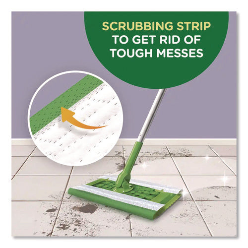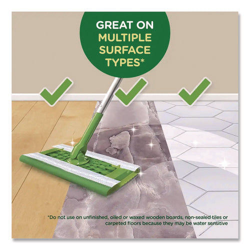 Premoistened cloths for 10" Swiffer sweeper. Wet wipes with a unique cleaning solution work to dissolve tough spots. Convenient disposable wipes remove dirt and grime. Safe for use on linoleum, vinyl, ceramic and finished wood floors. Swipe floors clean and throw wipes away—no rinsing required.