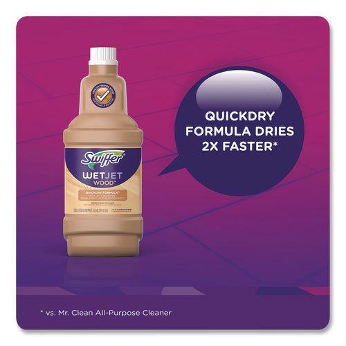 The Swiffer® WetJet® Wood multi-surface floor cleaner is a premixed cleaning solution made specially for the Swiffer® WetJet® all-in-one spray mop. The safe, fast-drying formula dissolves dirt and tough, sticky messes to reveal the natural beauty of your floors.